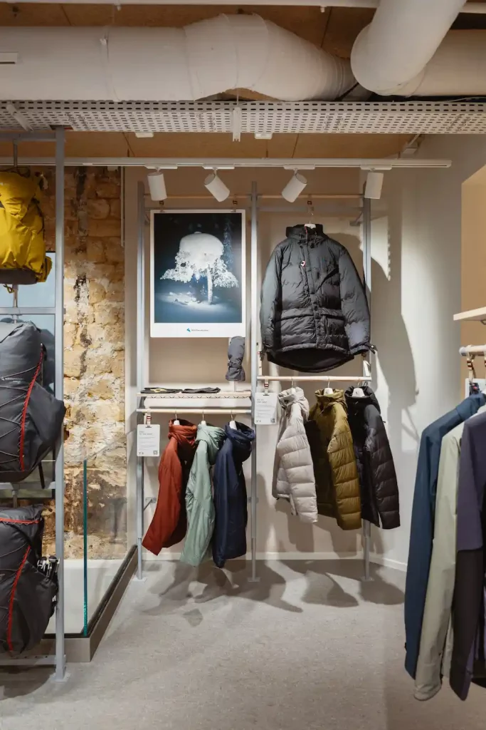 L’espace de vente a été pensé pour offrir une expérience unique, encourageant la découverte et l’éducation autour des valeurs de la marque. Klättermusen souhaite devenir une destination incontournable pour les amateurs de mode responsable et de culture outdoor scandinave.