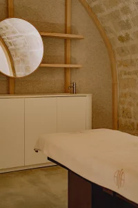 Pensé par le duo d’architecte Pastre/Gardera, le lieu est un havre de sérénité grâce à l’utilisation de matières naturelles et de formes rondes : un dépouillement luxueux qui s’incarne parfaitement dans les cabines nichées sous les voutes en pierres blondes de Paris. Les soins sont tout à la fois doux, énergisants et enveloppants grâce à des mixs de techniques – tui na, bols tibétains ou breathwork en tête. On en ressort regénérée, détendue et avec une peau éclatante.